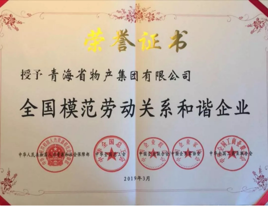 由青海省人力資源和社會保障廳、青海省總工會、青海省企業(yè)聯(lián)合會/企業(yè)家協(xié)會、青海省工商業(yè)聯(lián)合會共同推薦申報,青海省物產(chǎn)集團有限公司、青海互助青稞酒股份有限公司、正平路橋建設股份有限公司榮獲全國模范勞動關(guān)系和諧企業(yè)光榮稱號,西寧經(jīng)濟技術(shù)開發(fā)區(qū)東川工業(yè)園區(qū)榮獲全國模范勞動關(guān)系和諧工業(yè)園區(qū)光榮稱號,受到了國家人力資源和社會保障部、中華全國總工會、中國企聯(lián)、全國工商聯(lián)的隆重表彰。