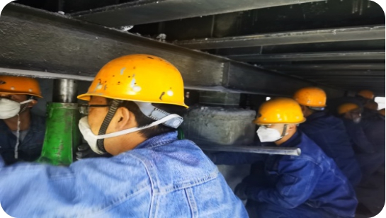 針對(duì)這一情況,公司黨委書記、董事長(zhǎng)張?jiān)手彝居H自掛帥,公司黨委副書記、總經(jīng)理王兆明同志靠前指揮,生產(chǎn)安全管理部、設(shè)備管理部全程監(jiān)督,電解車間、檢修車間技術(shù)骨干成立"攻關(guān)"小組,統(tǒng)一思想,集思廣益針對(duì)運(yùn)行的162臺(tái)電解槽全面開展摸底排查,并邀請(qǐng)"中冶天工"專業(yè)技術(shù)人員反復(fù)論證,結(jié)合各槽不同狀況制定了不停產(chǎn)狀態(tài)下,一人一工位、一人一區(qū)間,協(xié)同配合、分段調(diào)整--"一槽一策整修方案"。