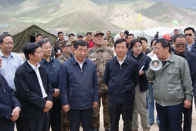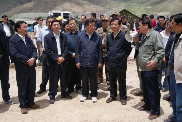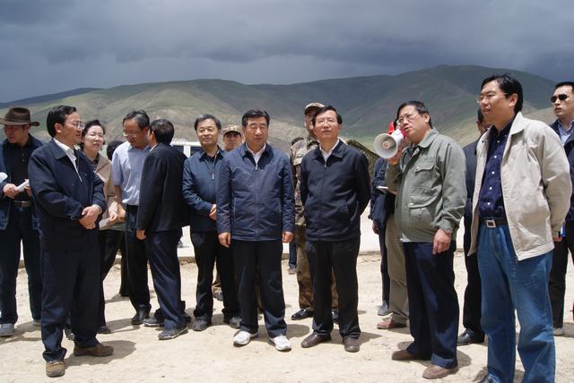 6月19日,中共中央政治局委員、國務(wù)院副總理、國務(wù)院抗震救災(zāi)總指揮部總指揮回良玉率領(lǐng)相關(guān)部委領(lǐng)導(dǎo),在青海省委書記強衛(wèi)、省長駱惠寧、副省長馬順青的陪同下,來到正在晝夜施工建設(shè)的青海物產(chǎn)玉樹建材物流集散中心,視察災(zāi)后重建物資儲備情況和集散中心工程建設(shè)情況。集團總經(jīng)理王玉輝向中央領(lǐng)導(dǎo)和省領(lǐng)導(dǎo)詳細匯報了建材物流集散中心建設(shè)規(guī)模和鋼材、水泥、木材三大類物資收儲情況。同時表示,青海省物產(chǎn)集團總公司將一如既往,全力以赴支援玉樹災(zāi)后重建,與各路建設(shè)大軍一道,為建設(shè)美好綠色新玉樹貢獻力量。聽完匯報,回良玉副總理非常高興,并做出重要指示,要做好統(tǒng)籌組織建材物資的采購和調(diào)運工作,努力保障供應(yīng),確保質(zhì)量,降低成本?;亓加窀笨偫砑笆☆I(lǐng)導(dǎo)與集團領(lǐng)導(dǎo)、工作人員合影留念。