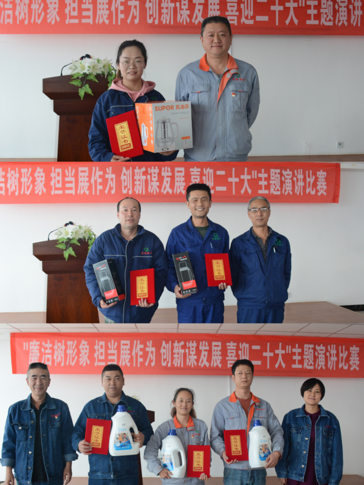 (物產(chǎn)工投公司訊 任蕊/文攝)為凝聚物產(chǎn)工投公司“清正廉潔、和諧友好、綠色低碳”的經(jīng)營發(fā)展最大合力,以優(yōu)異成績迎接黨的二十大勝利召開。10月15日,公司黨委、行政和工會(huì)、團(tuán)支部舉辦了“廉潔樹形象 擔(dān)當(dāng)展作為 創(chuàng)新謀發(fā)展 喜迎二十大”主題演講比賽。公司黨委書記、董事長張?jiān)手彝境鱿葜v比賽并講話。