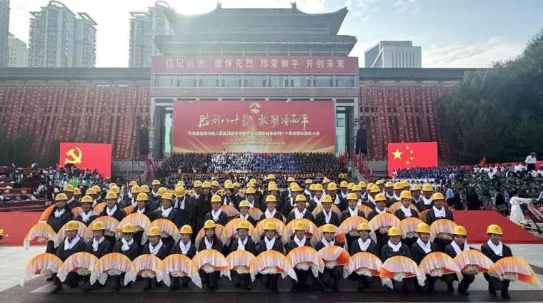 9月5日上午,勝利八十載 放歌頌和平——青海省紀(jì)念中國人民抗日戰(zhàn)爭暨世界反法西斯戰(zhàn)爭勝利八十周年群眾歌詠大會在新寧廣場隆重舉行。由省物產(chǎn)集團(tuán)80名職工組成的合唱方陣代表全省企業(yè)參加演出活動。集團(tuán)黨委書記、董事長劉玲,集團(tuán)黨委專職副書記、工會主席魏廷強(qiáng)參加紀(jì)念大會。