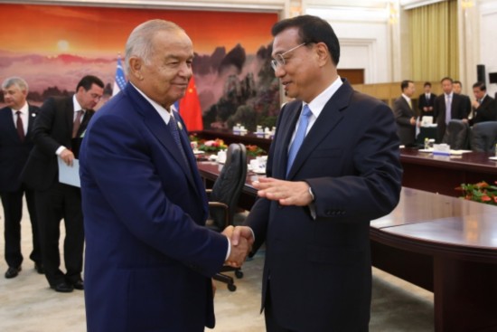 李克強總理會見烏茲別克斯坦總統(tǒng)卡里莫夫時說:"中烏可以在雙方感興趣的領域廣泛開展產(chǎn)能和裝備制造業(yè)合作。"