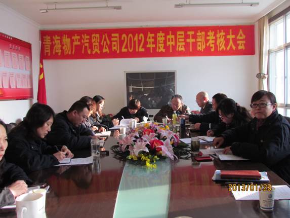 2013年1月28日,青海物產汽貿公司召開了2012年度中層干部考評會議,公司領導,各部、海東分公司負責人,公司中層副職和重點崗位、骨干員工代表共28人參加了會議。會議由黨支部書記黃曉梅主持,總經理張宏民做了重要講話。