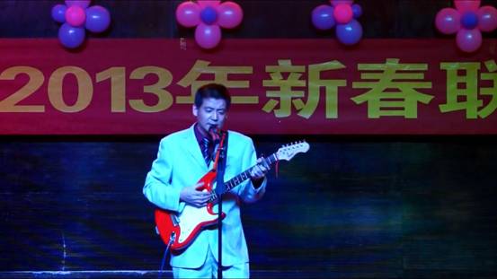 臨空開(kāi)投公司郎建明為大家表演吉他彈唱